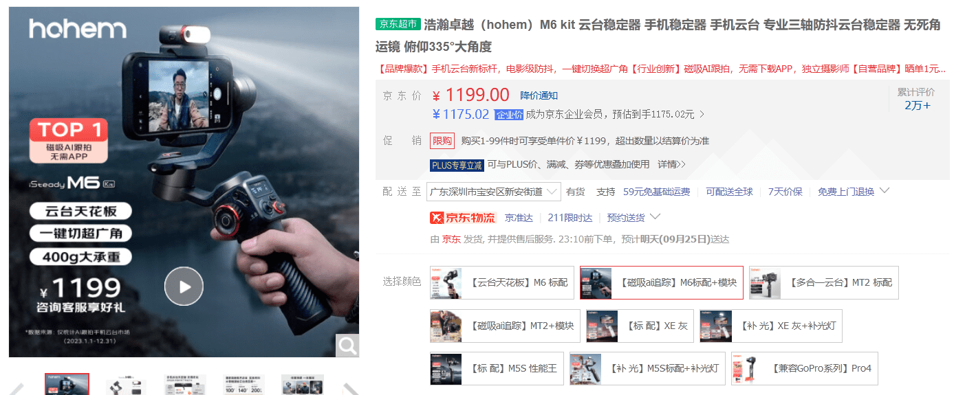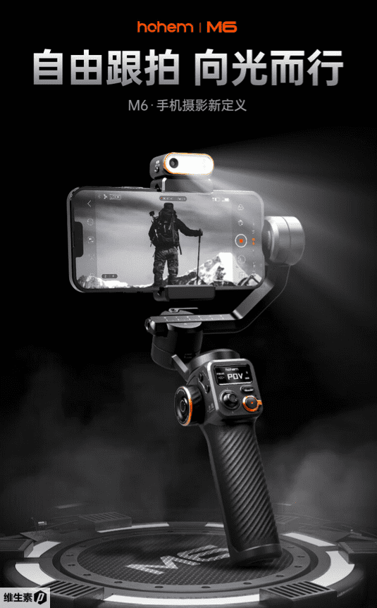【戳此处进入京东购买页面】:浩瀚卓越(hohem)M6 kit 云台稳定器 手机稳定器 手机云台 专业三轴防抖云台稳定器 无死角运镜 俯仰335°大角度