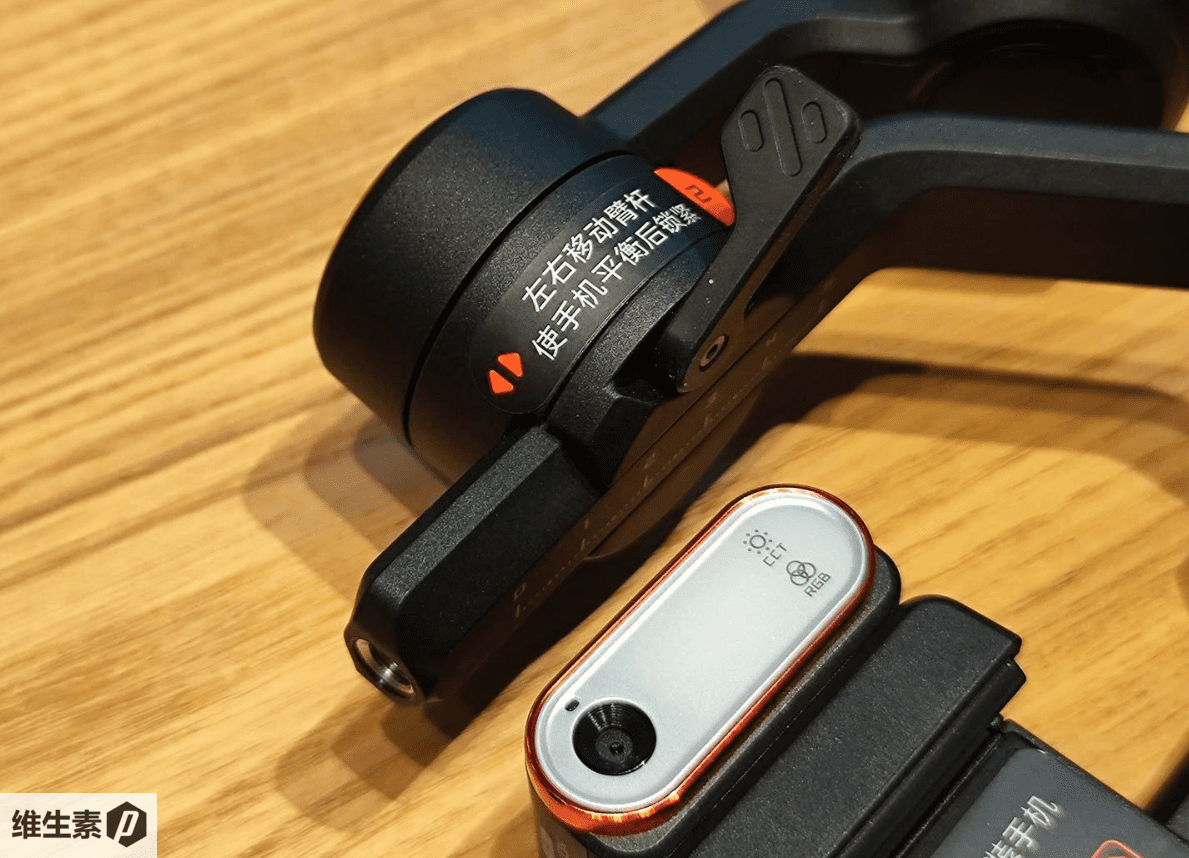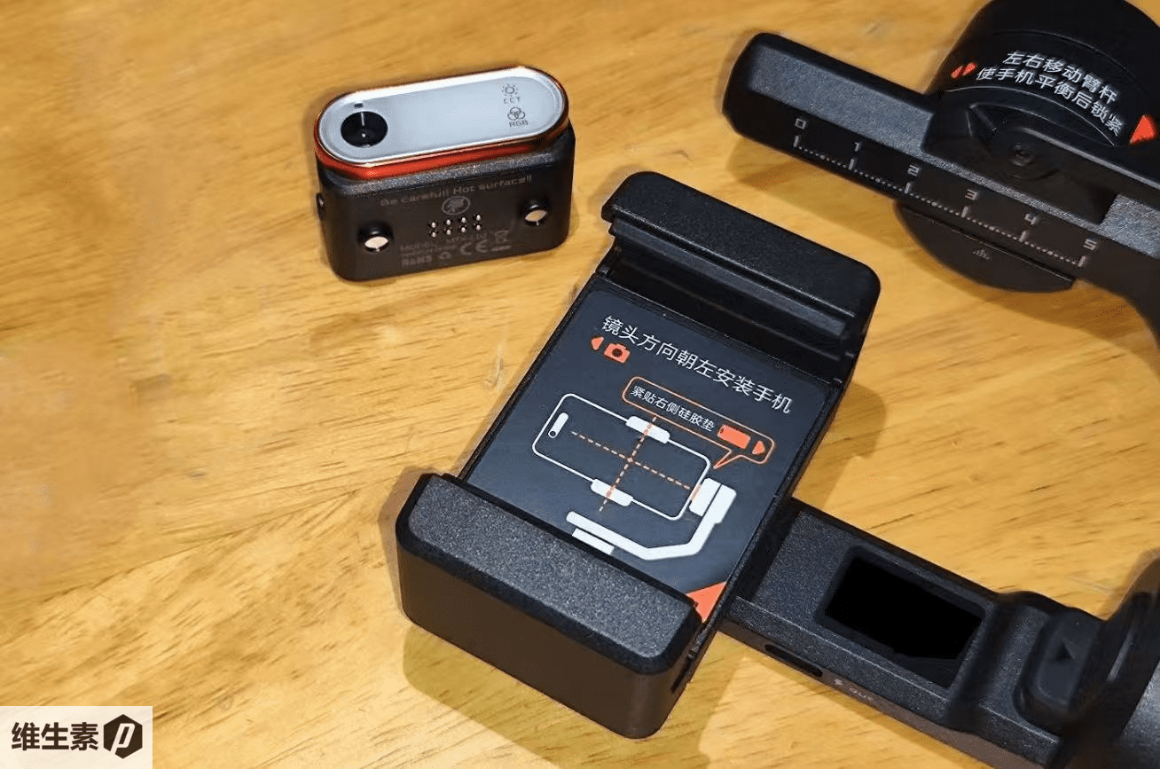 顶部有一个磁吸补光兼 AI 追踪器模块,可以调整方向磁吸装在拍摄的手机夹扣上面。