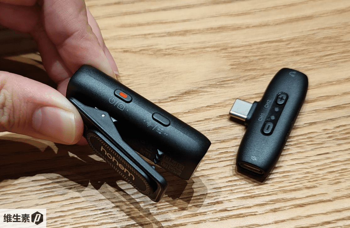 麦克风有一个对应的接收器,直接插入C口设备的手机,就能即插即用开始收音,这个设计非常方便好用,自动秒连能快速开始工作。