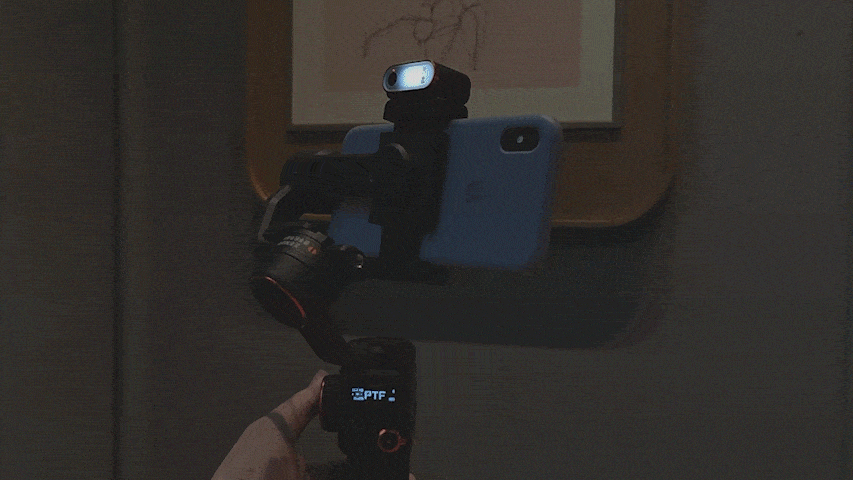 这个补光灯非常实用,尤其是做一些人物或者近物拍摄的时候,在光照还可以的场景下,就不需要额外补灯光了,自带灯光还能支持不同的 RGB 冷暖色。