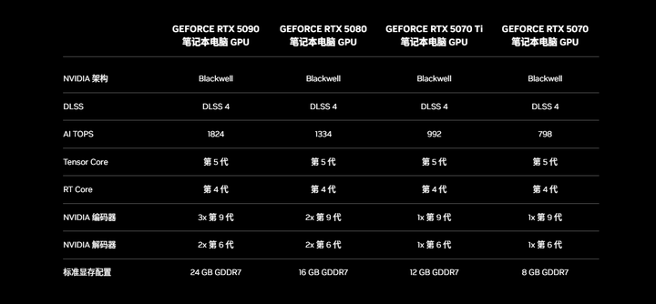 RTX 50 系移动端核心配置 & 架构
