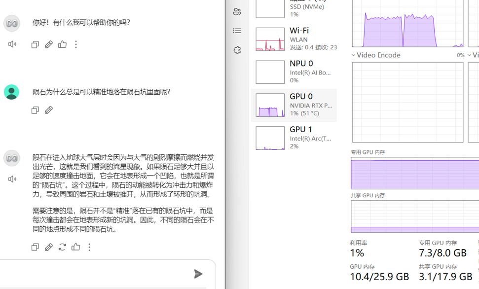 而 RTX 5070 Ti 的 12G 显存,就可以部署到 14B-Q4 量化的模型,参数规格更胜一筹,AI 生产力也顺手。