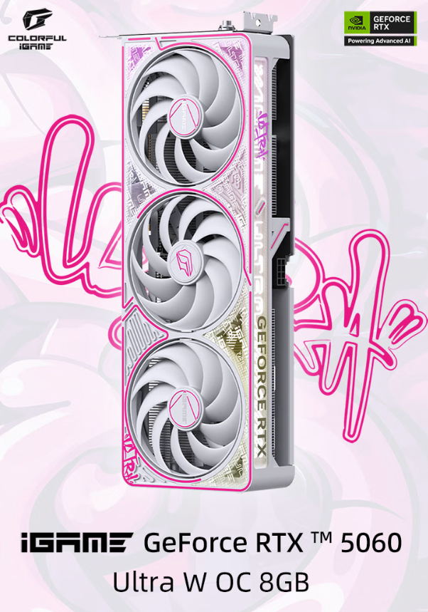 七彩虹(Colorful)iGame GeForce RTX 5060 Ultra W OC 8GB GDDR7 DLSS 4 电竞光追游戏设计电脑显卡