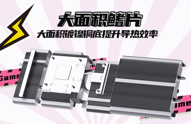 七彩虹 Ultra 系列用料挺不错的,RTX 5060 Ultra W OC 这一款是三风扇版本,采用大面积鳍片,回流焊工艺处理接触面,并且在侧面有 RGB 灯效,散热外甲有珠光渐变,不含挡片的长度是 300.5 mm。