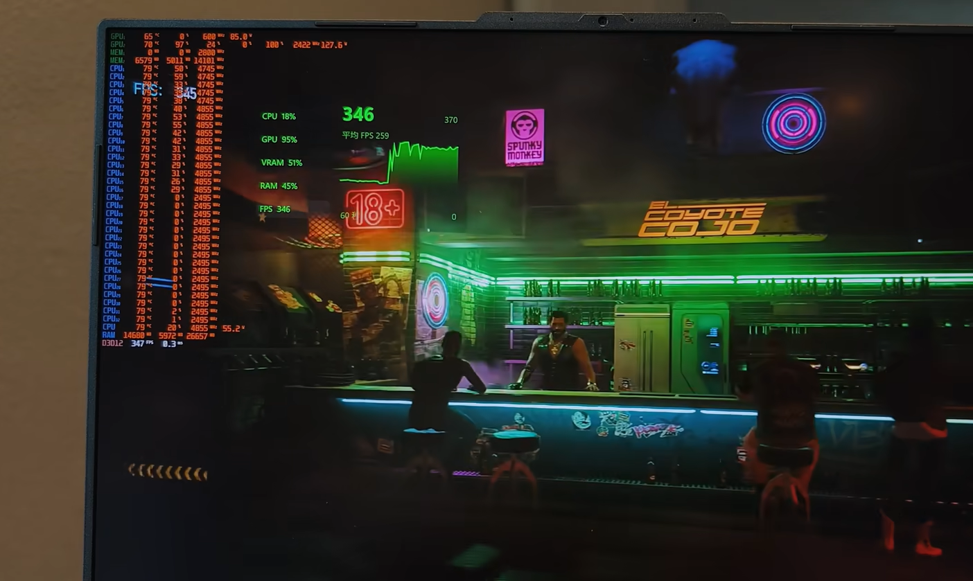 比如赛博朋克2077,拿 RTX 5070Ti 开上 4 倍多帧生成,最高帧直接拉上三百多,要放到以前,要是有人跟我说这种数据结果,简直要怀疑人生。