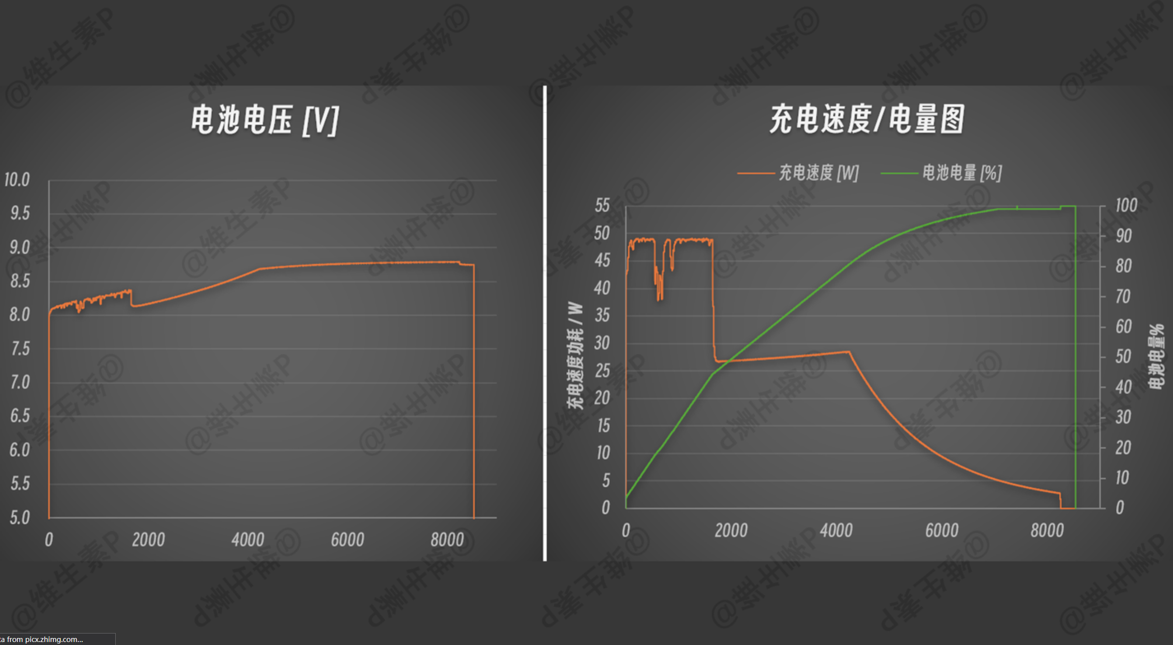 比如说,下面这个图,就是某个笔记本电脑的充电电池电压变化,0%电量的时候是接近 8V , 100% 电量的时候是接近 8.75V .