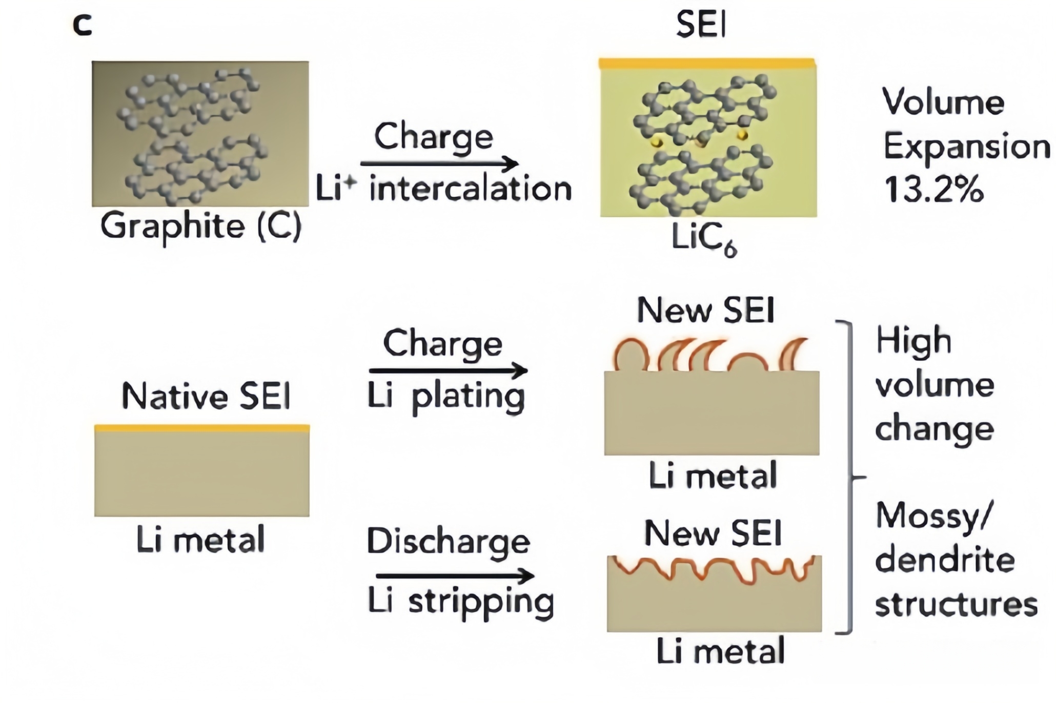 电池损耗问题,也就是电池在充放电过程中的衰减。最常见的衰减机理主要是两个,分别是固态电解质界面相 SEI (Solid Electrolyte Interphase) 不稳定,还有锂析出(Lithium plating) 这两种。